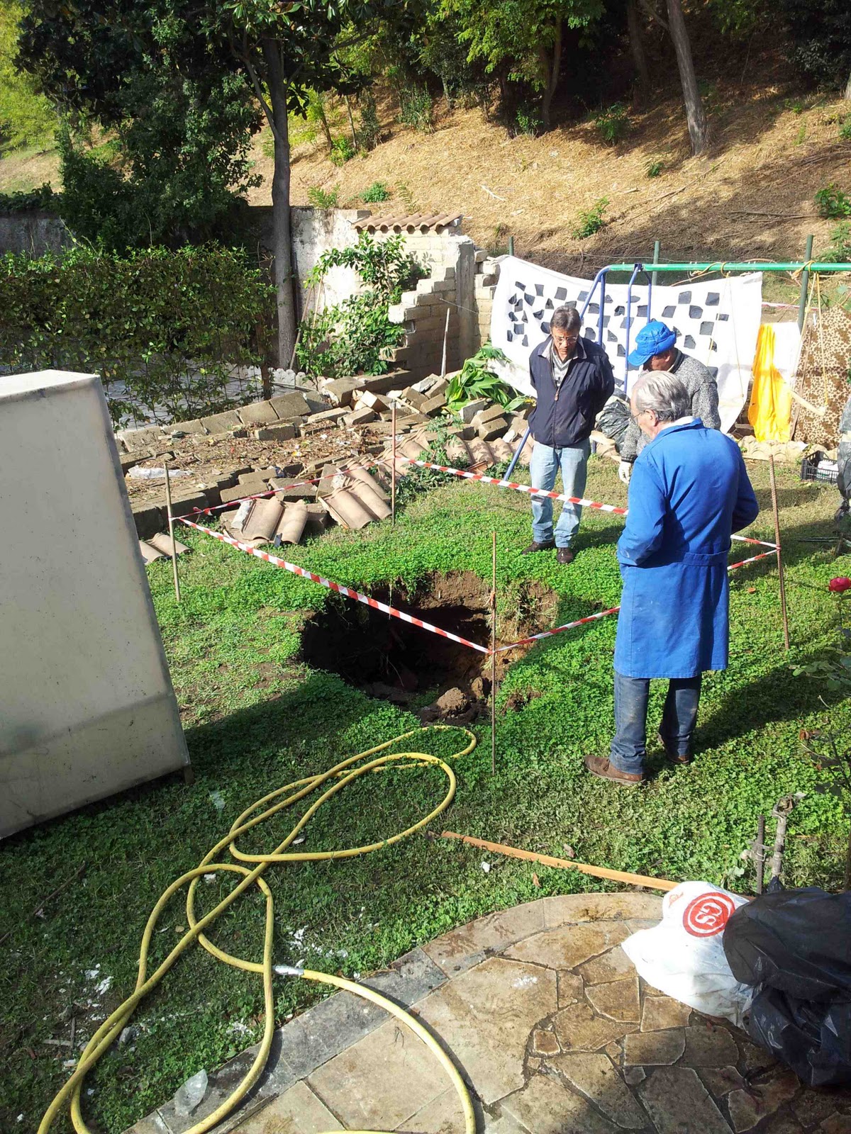 e studiare la voragine….sono passati 4 giorni e non si è visto nessuno…..e domani minaccia ancora pioggia, pioggia violenta……No non si può vivere così….Signori del XIII Municipio dove siete? Per favore solo una verifica, solo una parola, un’aiuto…